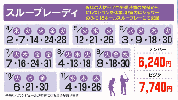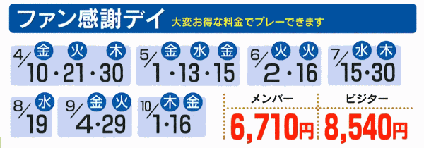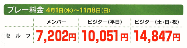 | 2026シーズンプレー料金 |