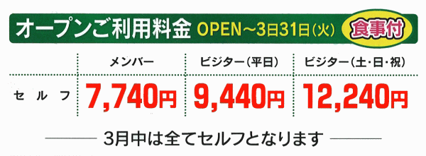 | 2026オープンプレー料金 |